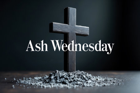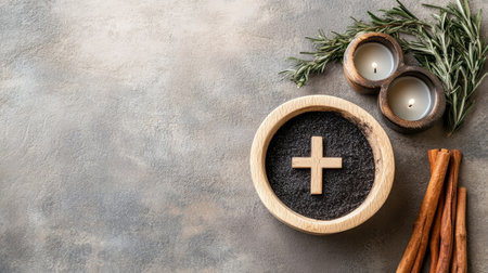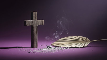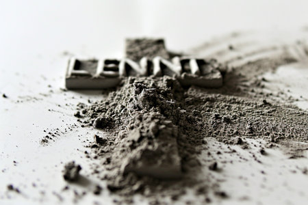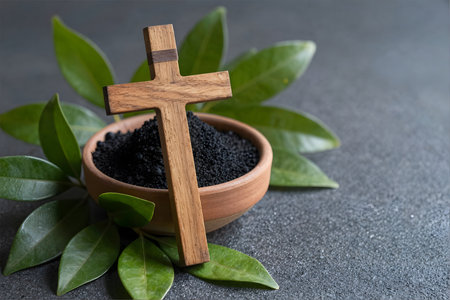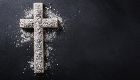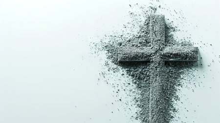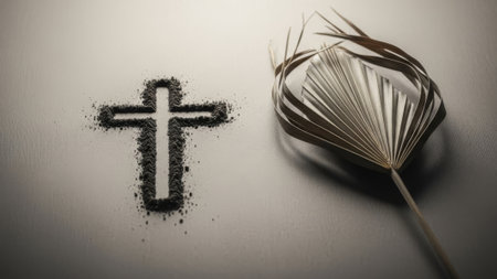 AI Generative Greeting card on Christian religious holiday Ash Wednesday, cross sprinkled with ashes