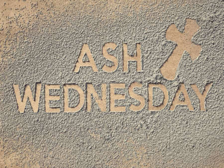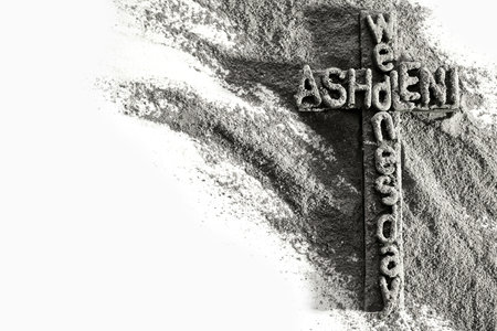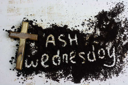 Ash Wednesday concept - Ash Wednesday words and a cross formed out of ashes.