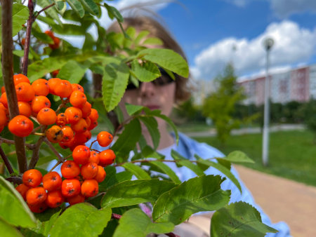 rowan fruits ripened on the tree at the end of summer
