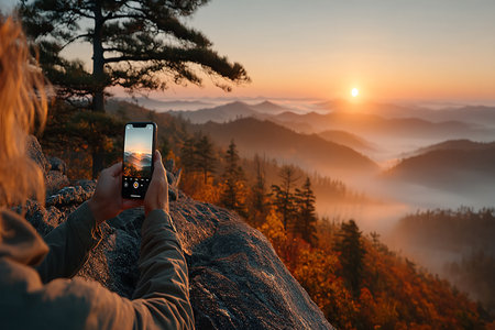 camera phone mobile photographing the landscape