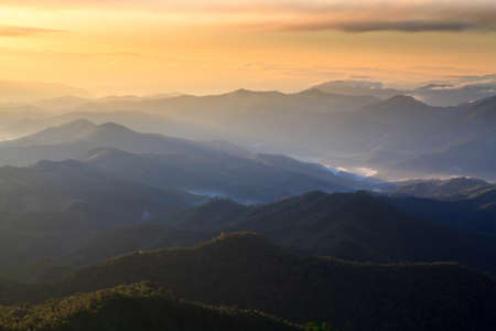 Majestic sunrise in the mountains landscape Dramatic sky Thailand