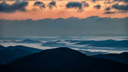 Blue Ridge Parkway Scenic Landscape Appalachian Mountains Ridges Sunrise Layers over Great Smoky Mountains