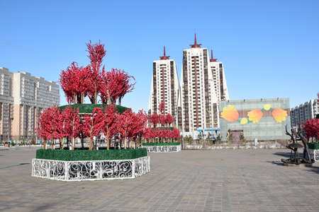 Russia, Chelyabinsk city central region in the evening at sunset.