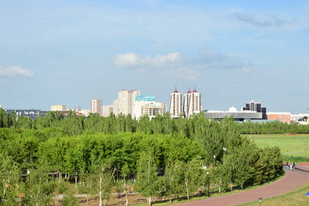 WATER-GREEN BOULEVARD, ASTANA, KAZAKHSTAN JULY, 2015: View high-rise buildings on the water-green boulevard.