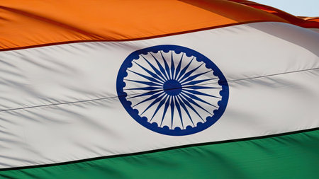Indian flag colors and ashoka chakra swirl in fabric design.