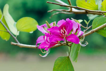 Vibrant Pink Orchid Tree Flower Blooming on a Branch