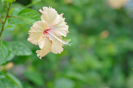Chinese rose or Hibiscus or Hibiscus rosa sinensis or Hibisceae or Malvaceae , white hibiscus or cream coloured flower or beige flower in the garden