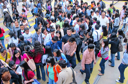 HONG KONG - DECEMBER 05: Shoppers and visitors crowd at a shopping street on Dec 05, 2010 in Hong Kong, China. There are more than 40 millions of visitors arriving Hong Kong every year.