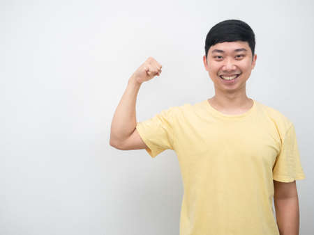 Young Asian Man Smiling confidence wearing a white shirt, looking at camera