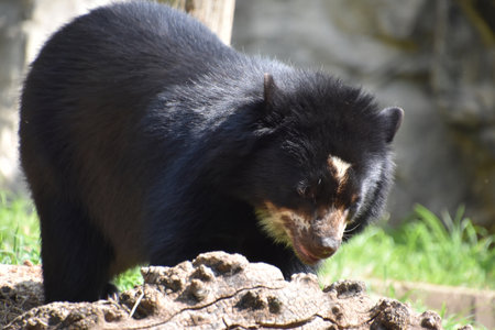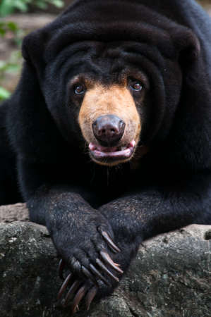 Malayan bear - Helarctos malayanus - the smallest species of bear. It is black and on a rock.