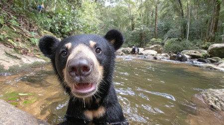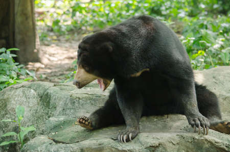 malayun sun bear is dangerous species in forest ,thailand and it have black hair, u-shape