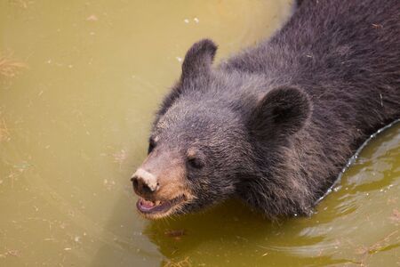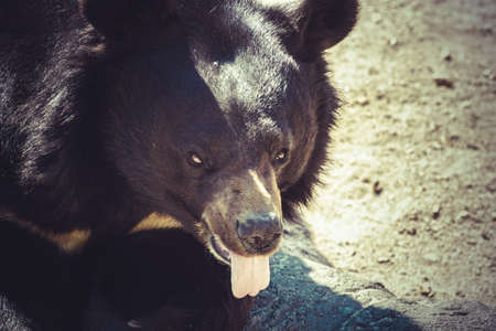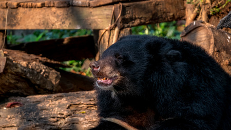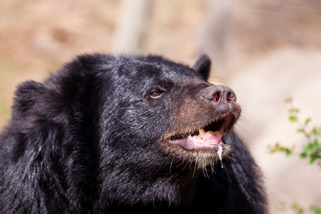 Portrait Asian black bear. Also known as Himalayan bear (Ursus thibetanus) or Tibetan beard.