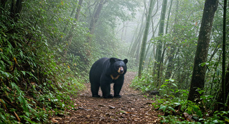 Himalayan black bear walking in the rainforest of Sumatra, Indonesia