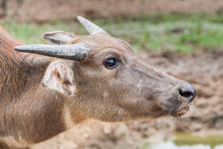 present buffalo animal female in the grass of the asian plains