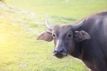 Thai buffalo sun light in soft focus., Thailand