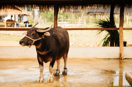 Close up of Water buffalo (Thai buffalo) at countryside in Southern of Thailand. A picture of a buffalo in the stall
