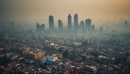 Urban skyline showcasing tall skyscrapers and sprawling urban areas