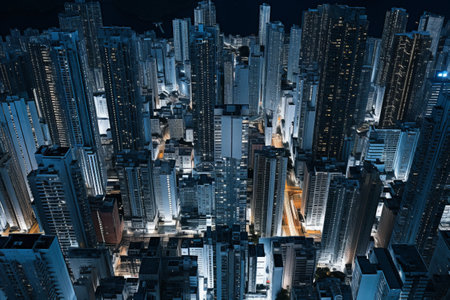 Dense skyline of highrise buildings under vibrant city lights Dec 17 2025