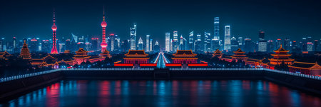 Glowing skyscrapers illuminate Beijing modern cityscape at night generated by artificial intelligence