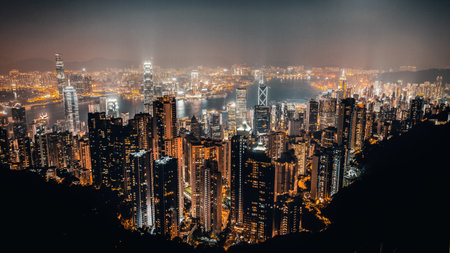 Skyline of Hong Kong, aerial view from Victoria Peak