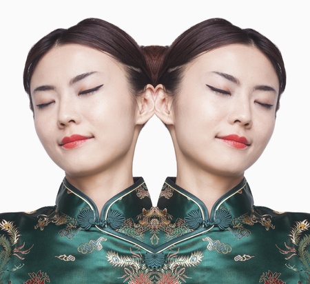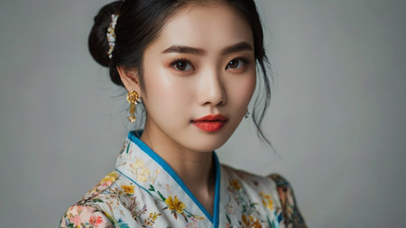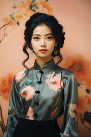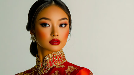 Portrait of a beautiful asian woman wearing traditional Chinese dress.