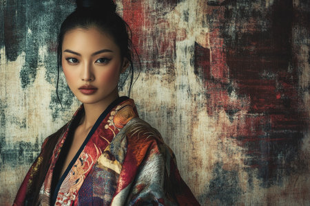 A fashionable Asian woman wearing a kimono