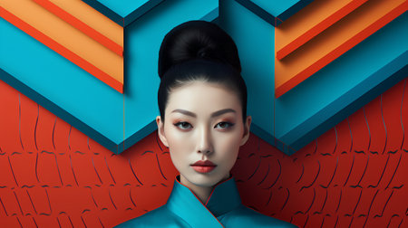 Portrait of a beautiful asian woman on a colorful background. Beauty, fashion.