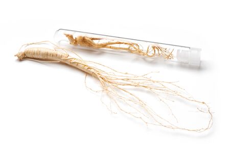 Fresh Ginseng Root on a white background. Vibrant and organic..