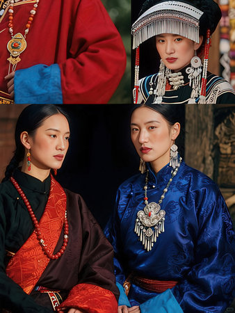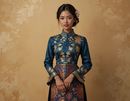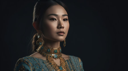 An AI generated illustration of a beautiful Chinese woman wearing vibrant traditional costume