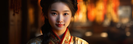 Portrait of a beautiful Asian woman in Chinese traditional costume