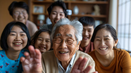A loving family shares tea and laughter in a warm, traditional setting, creating memories