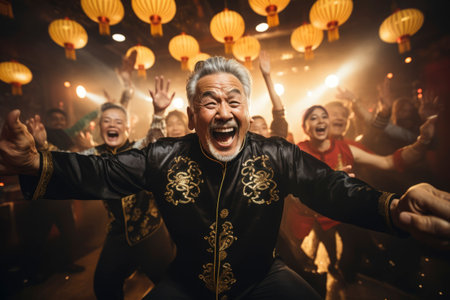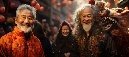 group of Chinese people celebrate Chinese New Year at a traditional festival