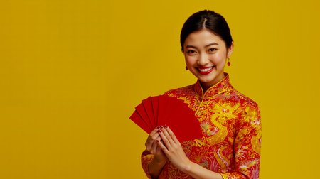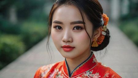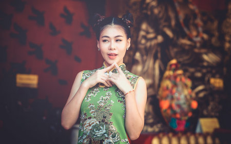 Portrait of a beautiful Asian woman in traditional cheongsam dress