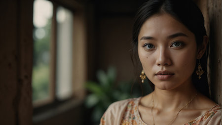 Portrait of a beautiful Asian woman standing in front of the window
