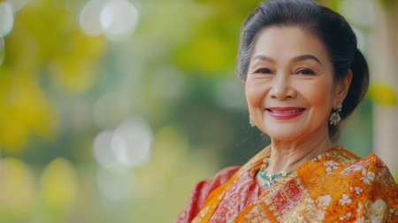 woman smile face old tribe costume traditional culture portrait ethnic asian. Generative AI.