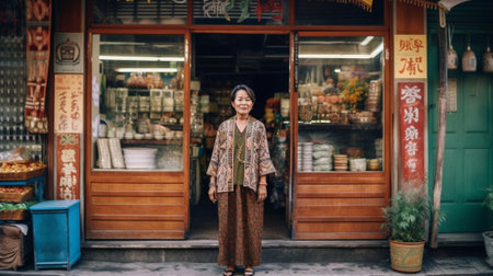 Generative AI : Sad bored anxiety asia people senior woman mature adult look away outside at closed small shop SME cafe store worry in loan money bad news health issue hard job mis