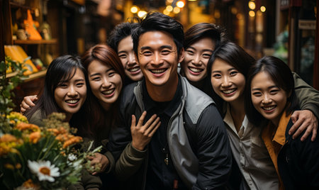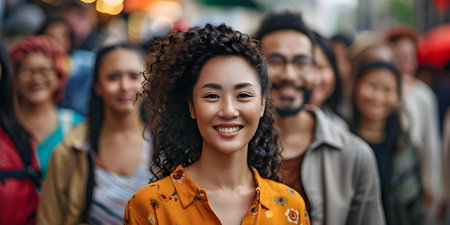 Portrait of a young asian woman with her friends in the background