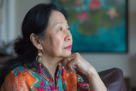 A woman is seated in a chair, looking out into the distance with a thoughtful expression on her face.