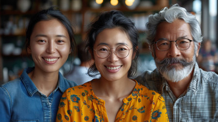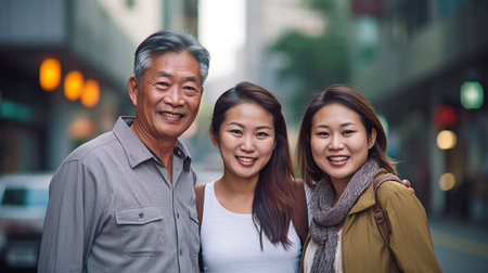 A young Thai woman and her parents are depicted in a Generative AI family photo in Bangkok.