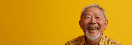 Asian elderly man on a yellow background.