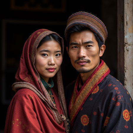 An elderly couple in traditional clothing, AI