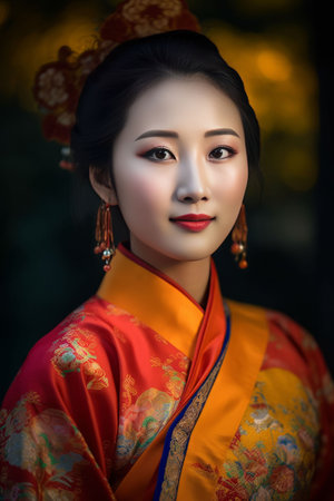 portrait of a beautiful asian woman in traditional clothing