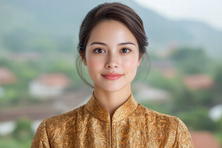 Portrait of a beautiful young asian woman wearing traditional clothes and smiling