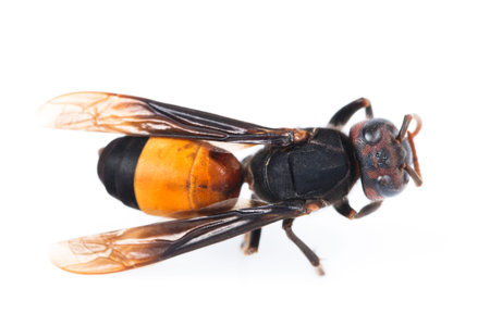 Closeup of dead hornet on white background