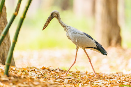 Image of Asian Openbill Stock bird in the middle of a field on a natural background. Bird. Animal.
