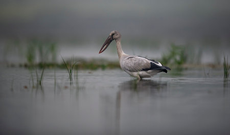 Asian openbill stork in nature at keoladeo national park, malaysia