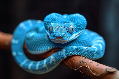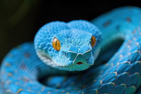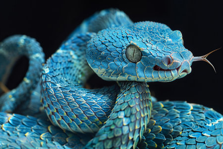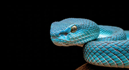 Blue Viper Snake Portrait Face Black Background Striking Reptile Wildlife