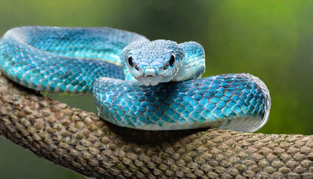 Dangerous Blue Pit Viper from Indonesia Vibrant Venomous Snake Wildlife