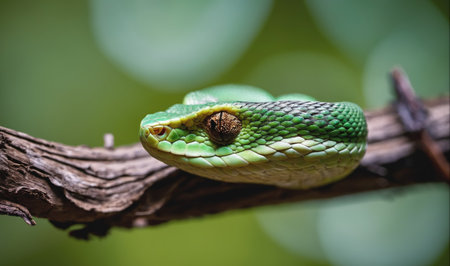 Close up of the head of a pit viper (Trimeresurus bicinctus)