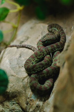 Colorful snake python cobra viper forest hiding waiting for prey rainforest jungle untouched nature predator venomous venom dangerous wildlife poisonous animal skin tail creepy african exotic species